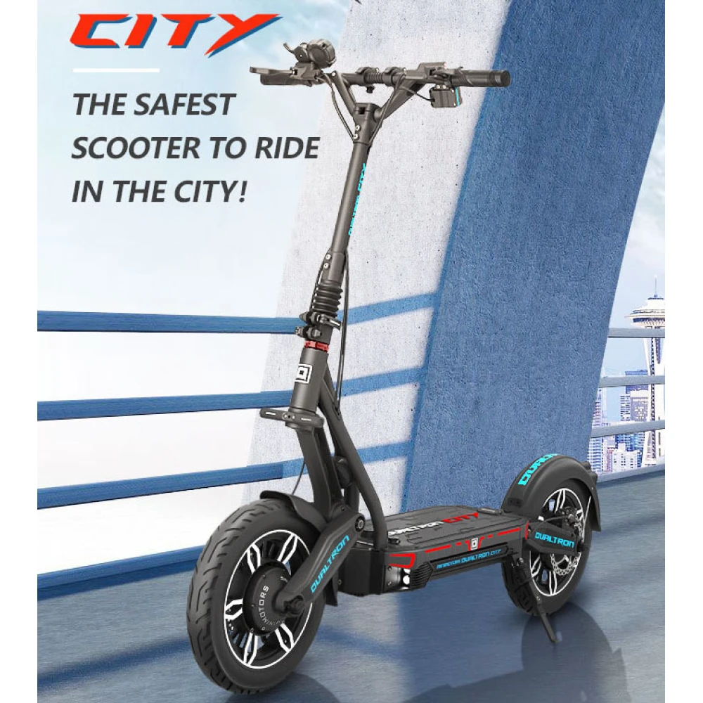 Модель стала комфортнее за счёт мягкой амортизации, которая позволит вам проходить препятствия и неровности на дороге (тротуар, гравий, лежачий полицейский, холмистые дороги и т.д) и Нельзя ещё не упомянуть широкие 15 дюймовые колёса. Благодаря дорожному просвету самокат стал более проходимым. Dualtron city имеет самую длинную колесную базу среди самокатов высокого класса. За счёт всех этих характеристик самокат уже достоин покупки и самое главное, вашего внимания. Продавцы нашего магазина рекомендуют приобрести аксессуары для повышения вашей безопасности. Информацию о наличии вы можете узнать у продавцов магазина.