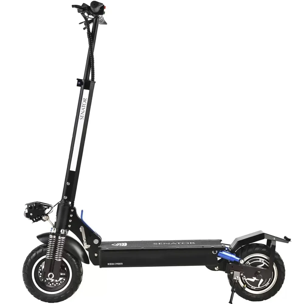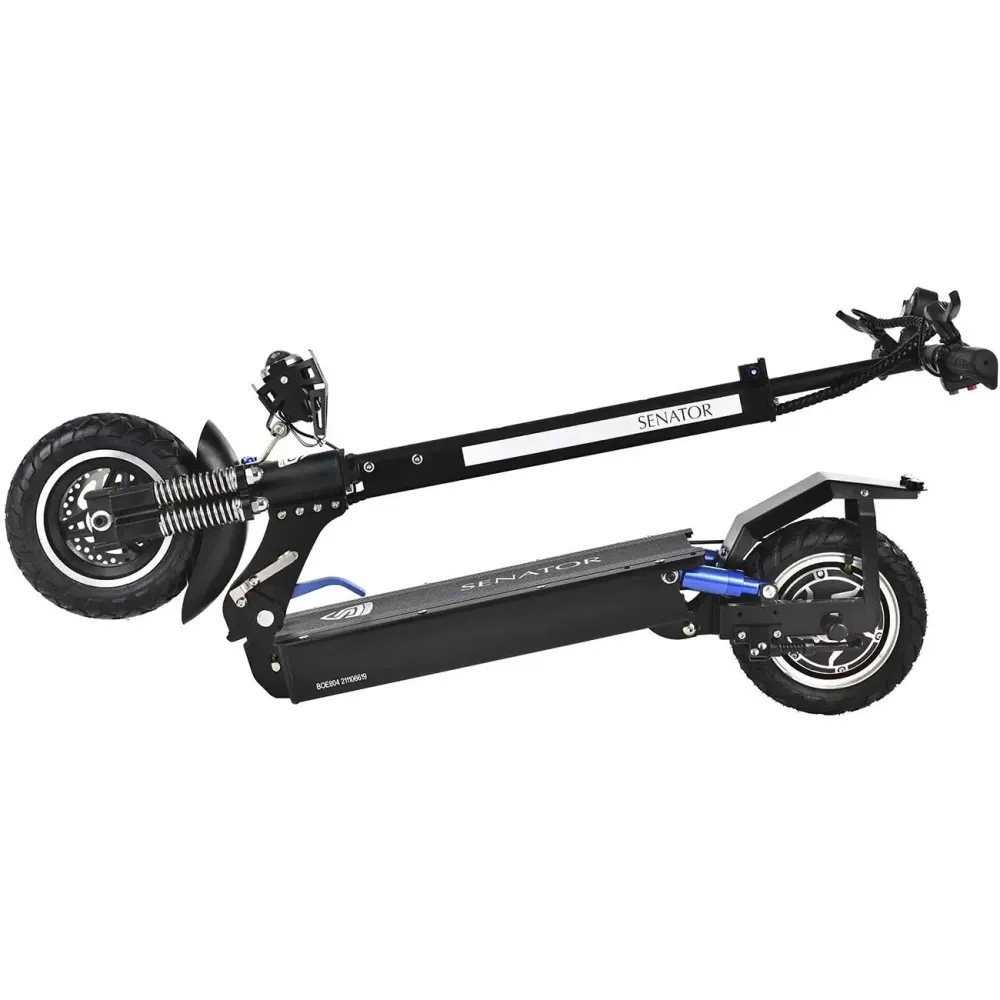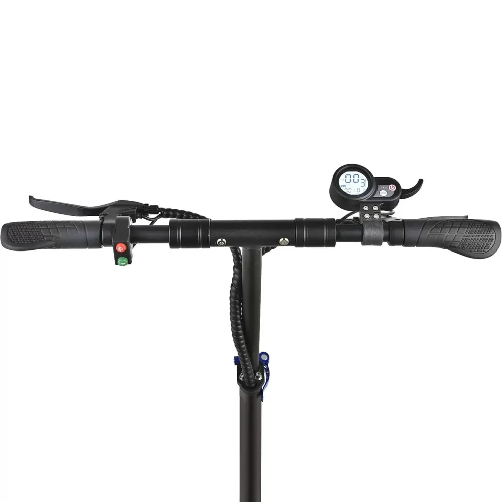 Заряжается он от электросети до 100% за 7-8 часов. У этой модели десятидюймовые колеса и два пневматических амортизатора. В горку максимальный угол подъема составляет 20 градусов. LCD панель поможет вам следить и контролировать скорость, и уровень зарядки, а также переключать режимы езды. На электрическом самокате Mizar Mustang (SN10MUST) можно ездить даже ночью при помощи передней и задней фары.