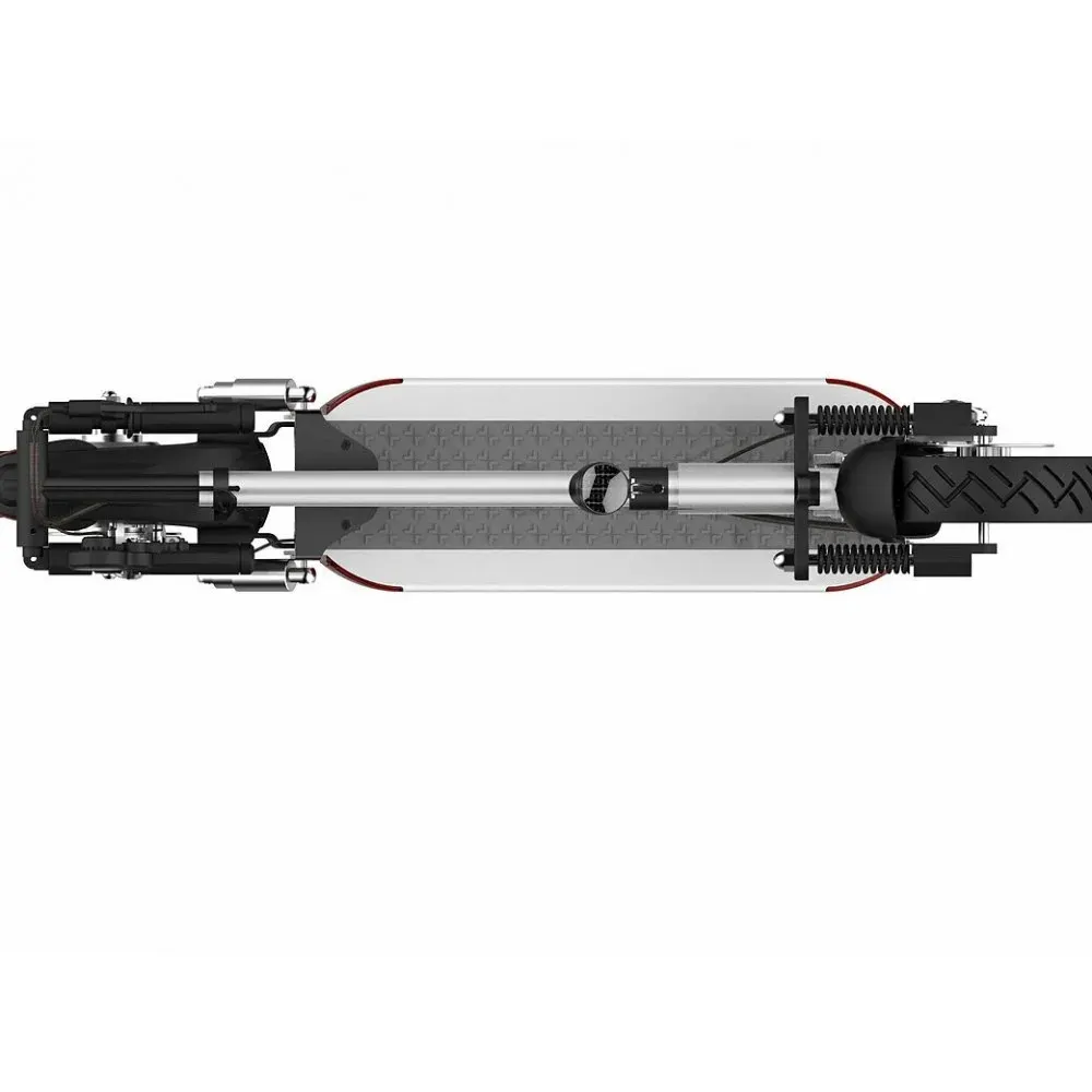Электросамокат оборудован съемным сиденьем, с которым длительные поездки больше не будут утомлять. А широкая противоскользящая дека (платформа для ног) позволяет без труда разместить на ней сразу обе ноги.
