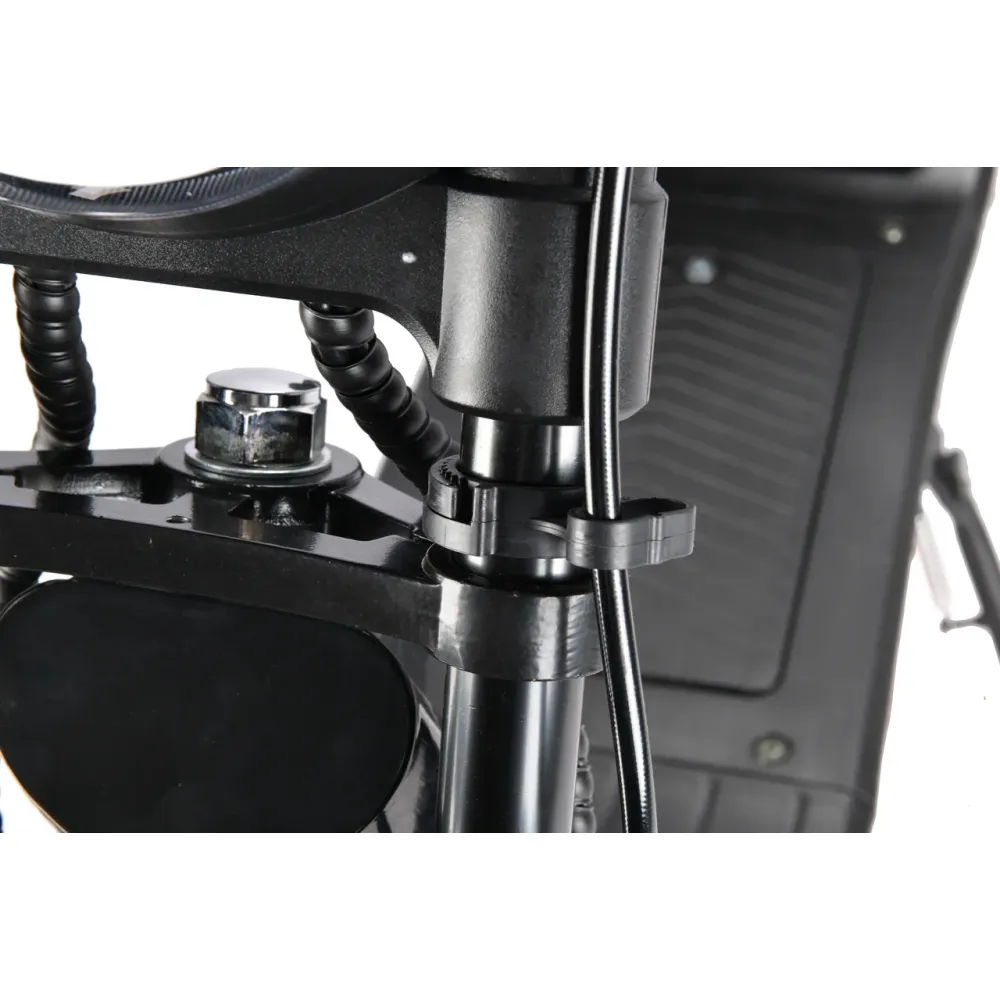 Технические характеристики черного электроскутера представлены такими параметрами: мощность – 2500 Вт, емкость литий-ионного АКБ - 1260 Wh, максимальная скорость – 50 км/час, максимальная продолжительность движения на одной подзарядке. Комфортное двухместное сиденье не утомляет, не вызывает перенапряжение позвоночного столба. Из других преимущественных характеристик стоит выделить прорезиненные ручки, наличие переднего и заднего тормоза, делающими движение безопасным для ездока и техники. При покупке электроскутера клиенты могут рассчитывать на гарантию производителя.