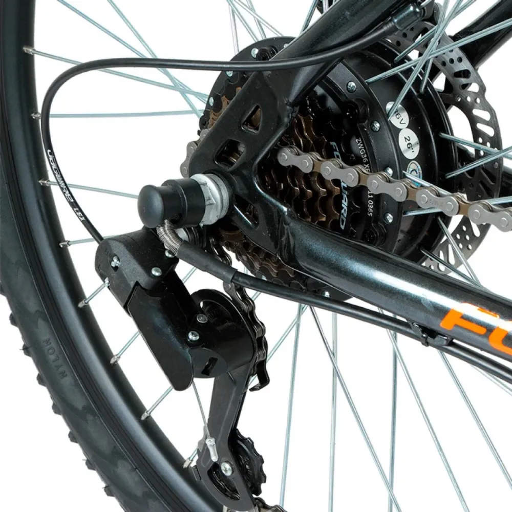 Регулируемое седло мягкое, анатомическое, не вызывает усталости. Управление 1 из 7 скоростей проводится с помощью половинчатой ручки. 26-дюймовые колеса покрыты внедорожной резиной, не знают препятствий. Наличие амортизаторов сглаживает езду. Отслеживание скорости, зарядки батареи и других параметров проводится с помощью бортового компьютера. Оформить заказ быстро поможет консультация специалиста и телефонный звонок менеджеру интернет-магазина.