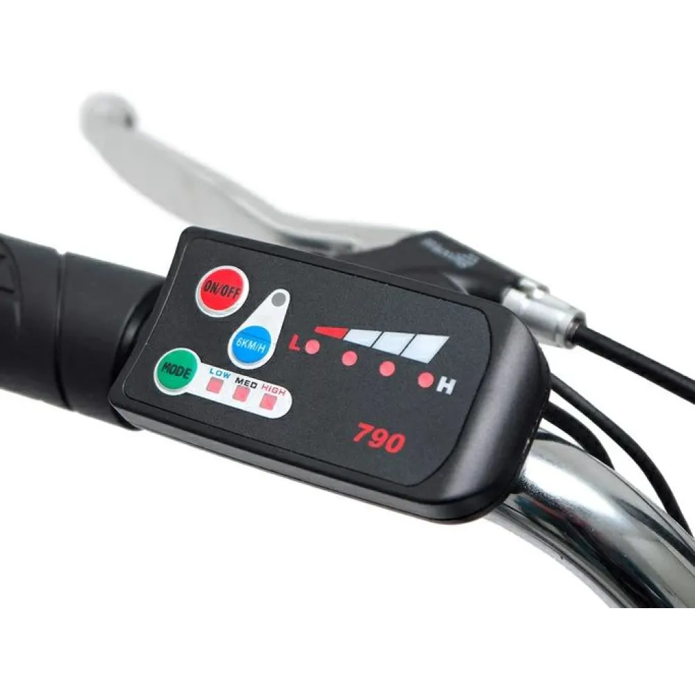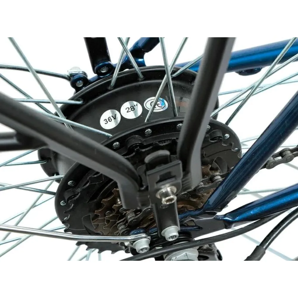 Скоростные характеристики улучшены – с этого гиганта свободно можно выжать 35 км/час. Литий-ионный аккумулятор подает напряжение в 36 В, тем самым запитывая электромотор мощностью 250 Вт. Съемная батарея надежно спрятана на багажнике и быстро заряжается за 5 часов от обычной розетки 220 В. Ободные колеса 28 дюймовые колеса Power VBR-207A подарят пользователю незабываемую радость от быстрой езды по неровным дорогам. Поездки за покупками станут еще проще благодаря оснащению электровелосипеда вместительным багажником, на котором комфортно перевозить покупки и транспортировать небольшой груз.