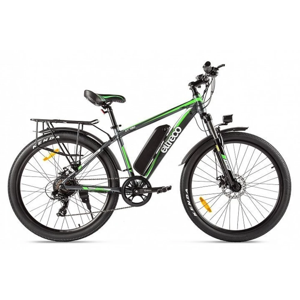 Велогибрид Eltreco XT 750 представляет собой доработанную и улучшенную версию модели ХТ 700. Производители оснастили велосипед  более емким аккумулятором, который обеспечивает запас хода до 50 километров на одном заряде батареи. Расположен аккумулятор под рамой и легко снимается для подзарядки в домашних условиях или офисе. Компактный, но мощный двигатель позволяет развивать скорость до 35 км/час. Такие показатели гарантируют комфортное и мобильное передвижение по городу в течение всего дня. В темное время суток безопасность поездки обеспечивает яркая передняя фара, которая уверенно освещает путь и делает велогибрид заметным для других участников движения. Надежные тормозные колодки с износостойким керамическим покрытием способны быстро остановить транспортное средство даже в экстренной ситуации. Рама выполнена из легкого и прочного алюминиевого сплава и выдерживает нагрузку до 100 килограммов. Пользователи оценят эргономичное сиденье из искусственной кожи и удобные ручки руля, обеспечивающие комфортное положение рук. Велогибрид Eltreco XT 750 отличается стильным и современным дизайном, а его эксплуатационные характеристики позволяют одинаково эффективно использовать его как для поездок по городу, так и для увлекательных загородных велопрогулок.