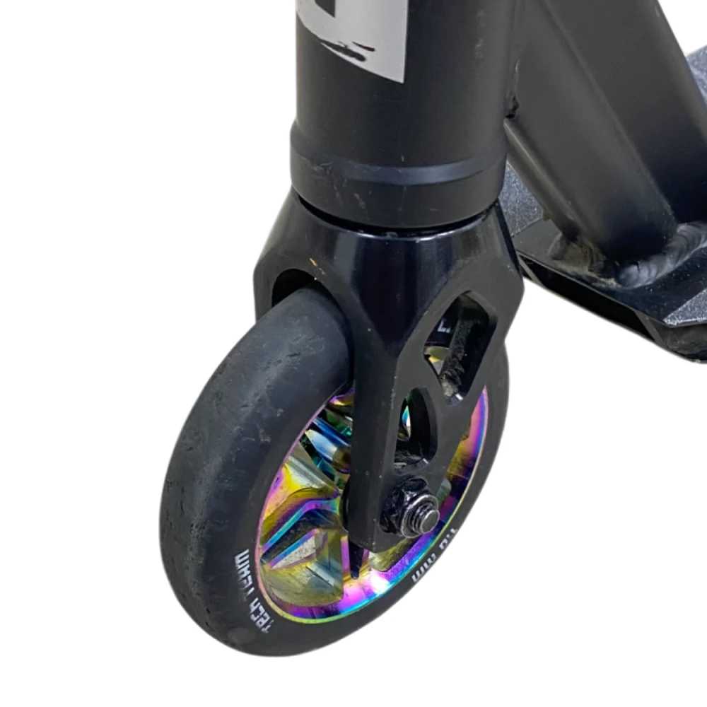 Трюковой самокат Tech Team Comrade - это идеальный выбор для начинающих и опытных райдеров, стремящихся к новым достижениям в мире трюков и катания. С высотой руля от деки в 590 мм, он обеспечивает удобную посадку для наездников ростом от 120 до 165 см. Конструкция самоката выполнена из прочного алюминия ALU 6061, что гарантирует надежность и долговечность. Самокат оснащен высококлассными подшипниками ABEC 7 Carbon, которые обеспечивают плавный и быстрый катание. Его вес всего 3,35 кг делает его легким и маневренным, а максимальная нагрузка до 100 кг позволяет использовать его как подросткам, так и взрослым. С диаметром колес 110 мм и материалом из полиуретана, самокат обеспечивает отличное сцепление и комфорт при катании. Задний ножной тормоз обеспечивает надежное торможение, в то время как система компрессии HIC позволяет легко выполнять трюки. Размер деки составляет 510 мм в длину и 115 мм в ширину, что обеспечивает достаточное пространство для ног. Ширина руля в 540 мм добавляет стабильности во время выполнения трюков. Обратите внимание, что самокат не складной, что делает его более прочным и надежным для активного катания. Tech Team Comrade — это самокат, который вдохновит вас на новые свершения! Самокат использовался в тест-драйве, поэтому имеет царапины на корпусе, которые не влияют на его техническое состояние. Это идеальный выбор для тех, кто хочет попробовать свои силы в трюковом катании без больших затрат.